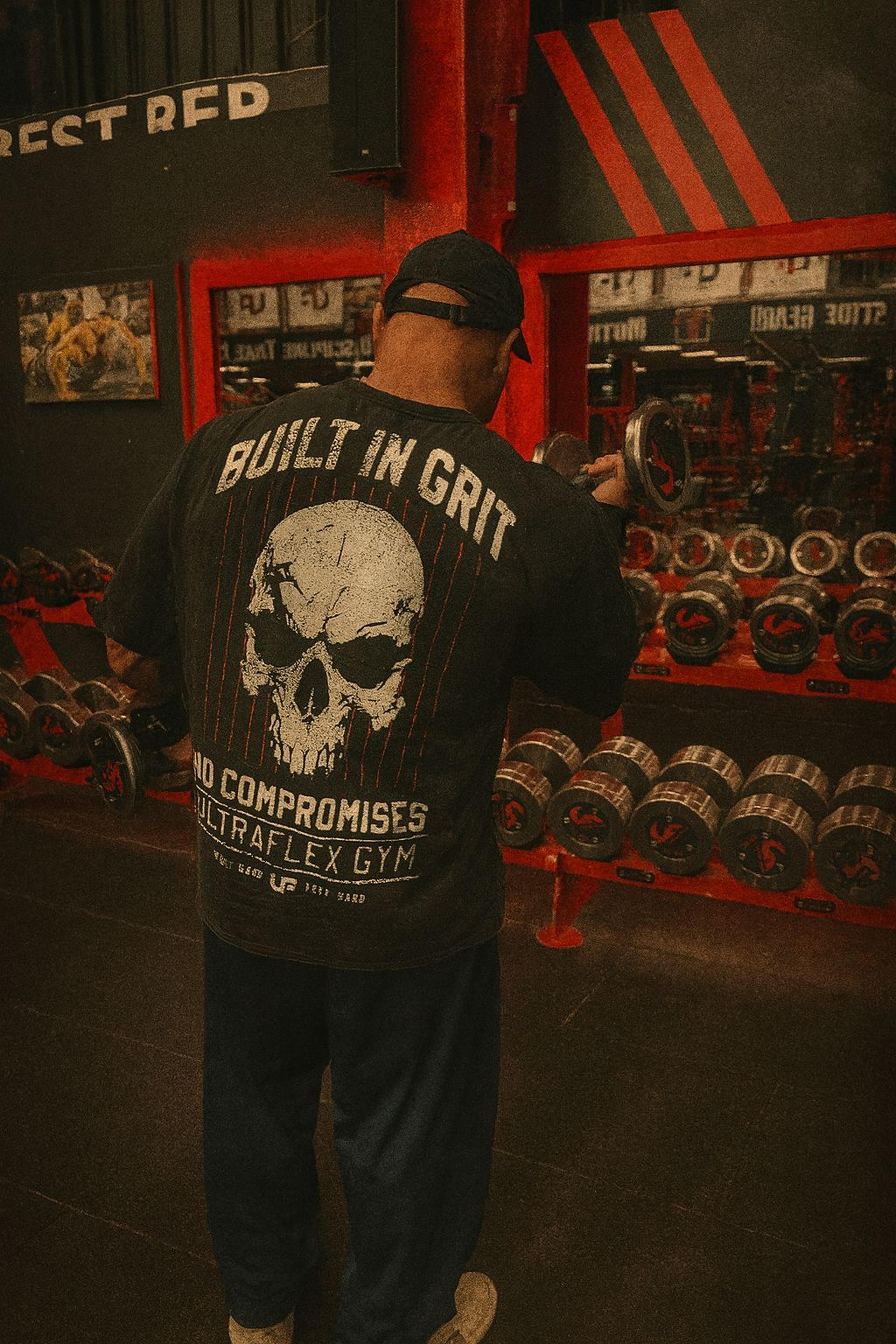 The owners of Ultra Flex reached out to us for a collab tee for their gym locations. We took their visual idea all the way from concept to print — bringing their artwork to life on this tee. This tee unites GASP’s no-compromise attitude with Ultraflex Gym’s legendary training culture